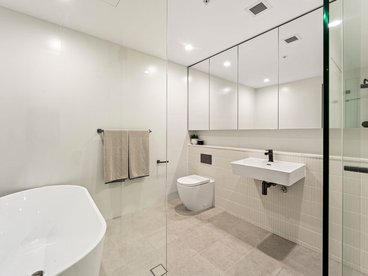 • Designer bathroom with floor-to-ceiling tiles and premium finishes