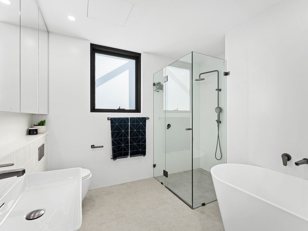 • Stylish main bathroom with floor-to-ceiling tiling and premium finishes